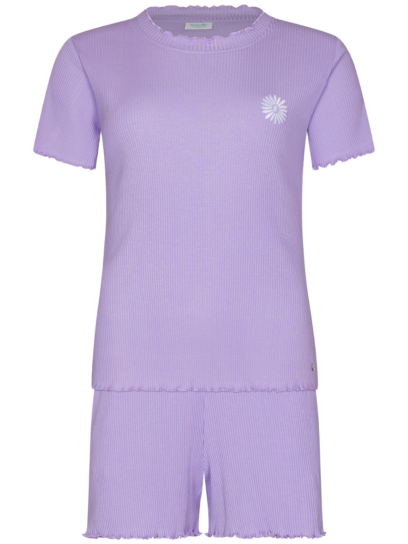 Deze shortama uit de Waterflower serie van MyRebelle is zacht, vrouwelijk en helemaal on-trend. De frisse lichtpaarse kleur en de subtiele details geven deze set een speelse, zomerse uitstraling. Perfect voor warme nachten en relaxte momenten thuis.