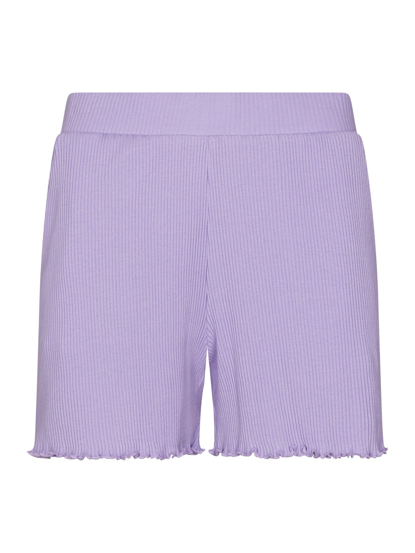 De uni top heeft een kleine frontprint en is voorzien van korte mouwen en een ronde hals. De ruffels langs de hals en mouwen en de golvende afwerking aan de onderkant geven de top een extra vrouwelijke touch. De bijpassende short is uitgevoerd in dezelfde zachte lichtpaarse tint en heeft een elastische tailleband voor een comfortabele pasvorm. Ook hier zorgt de golvende afwerking aan de onderkant voor een speels detail. De steekzakken aan de voorkant maken de short extra praktisch.